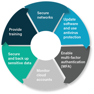 Configure software to auto-install updates. Routinely update operating systems, web browsers, and other applications. - Enable multi-factor authentication (MFA)